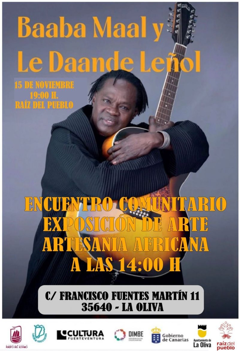 Gran Jornada Cultural Africana en Fuerteventura La Asociación DIMBE te invita a vivir un día excepcional de encuentro comunitario, con exposiciones de arte y artesanía africana, el 15 de noviembre de 2025. La sede de la Asociación Raíz del Pueblo, en La Oliva, Fuerteventura. A las 14:00 h podremos disfrutar […]
